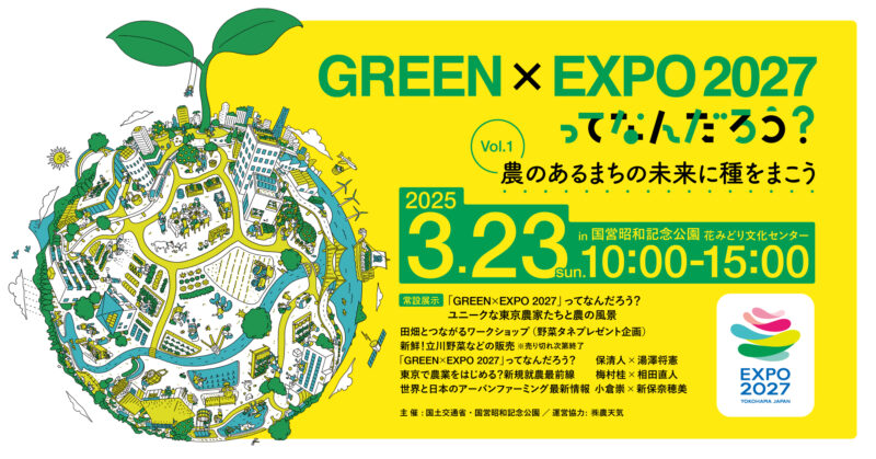 3月23日 国営昭和記念公園 花と緑の文化センターにて2027年に横浜で開催される国際園芸博覧会「GREEN×EXPO2027」のプレイベントを開催します (株)農天気として運営協力し当日のトークイベントの進行を小野淳が […]