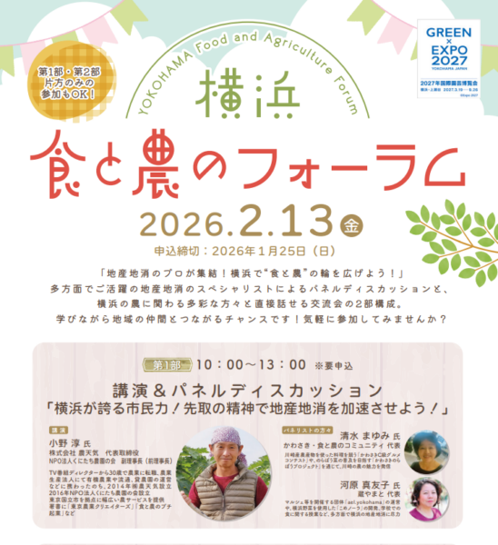 2026年2月13日(金)、横浜市役所にて開催された第13回「横浜 食と農のフォーラム」に、弊社代表の小野淳が登壇いたしました。 今回のフォーラムのテーマは、「地産地消のプロが集結! 横浜で“食と農”の輪を広げよう!」。 […]